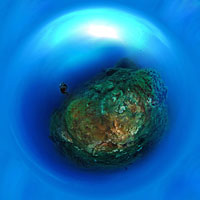 Cela fait maintenant un long moment que ce projet trotte dans ma tête. J'ai toujours été fasciné par la technologie QuickTime VR: recréer une réalité virtuelle était pour moi la photo grand-angle "ultime". Elle permet de retranscrire exactement l'ambiance du moment et pour les non plongeurs de s'immerger complètement dans notre monde. J'ai décidé de tenter l'expérience car techniquement, les "bulles virtuelles 360 ° x 180 °" peuvent maintenant être affichées grace au flash, rendant ainsi leur diffusion trés largement facilitée (plus besoin de télécharger des plugins car la plupart des browser peuvent lire le flash).